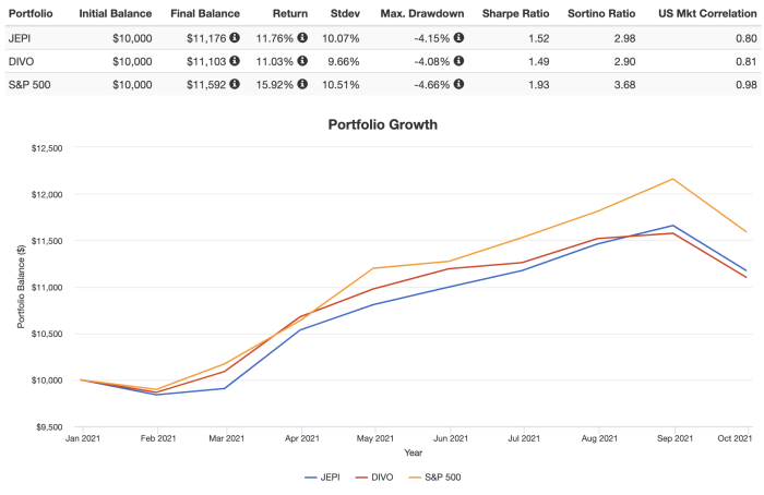 • Diversification: JEPI maintains a diversified portfolio to reduce specific risk exposure and protect against market volatility.
